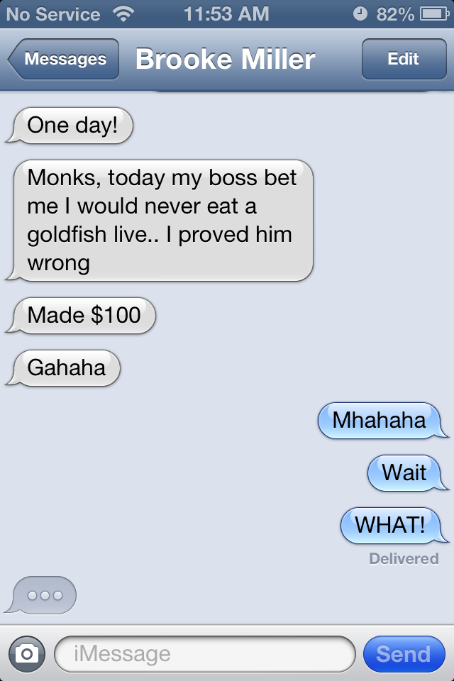Mills Drinks Goldfish. June 14, 2013. Anna MischkeJune 14, 2013United States Post navigation PreviousNext The best friend of all time, Brooke Miller, gets a warm welcome from her colleagues at her new job. She’s a boss; forget it PETA. Share this: Click to email a link to a friend (Opens in new window) Email Click to share on X (Opens in new window) X Click to share on Facebook (Opens in new window) Facebook Click to print (Opens in new window) Print Click to share on Tumblr (Opens in new window) Tumblr Click to share on Pinterest (Opens in new window) Pinterest Like Loading... Related